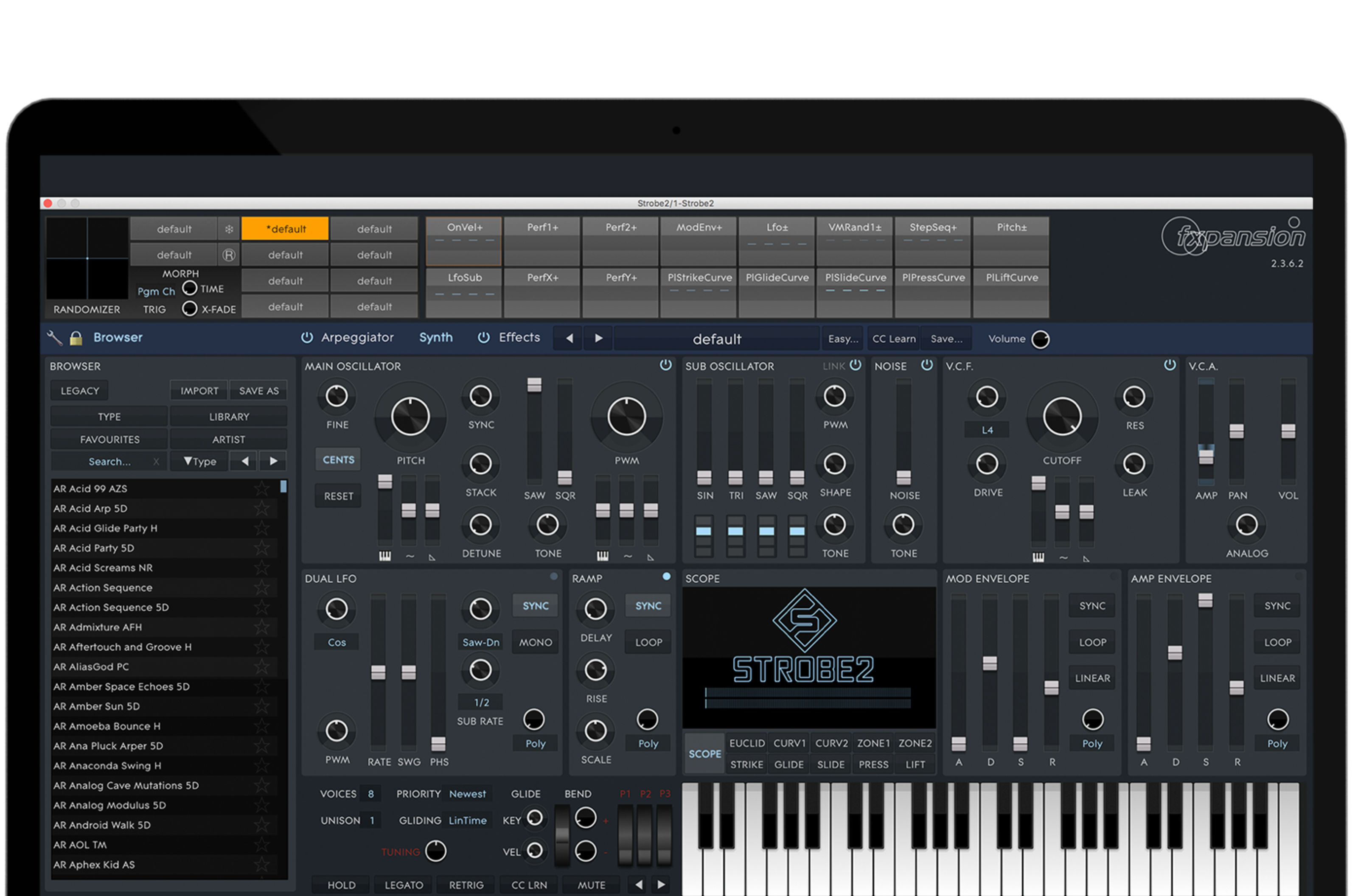 FXpansionのポリフォニック・ソフトウェア・シンセサイザーStrobe 2のフルライセンス版が付属。表現力豊かな1100を超えるプリセットを収録します。3種類のマクロコントロールで、アナログモデリングで再現される極上のクラシック・シンセサウンドを思いのままに演奏しましょう。