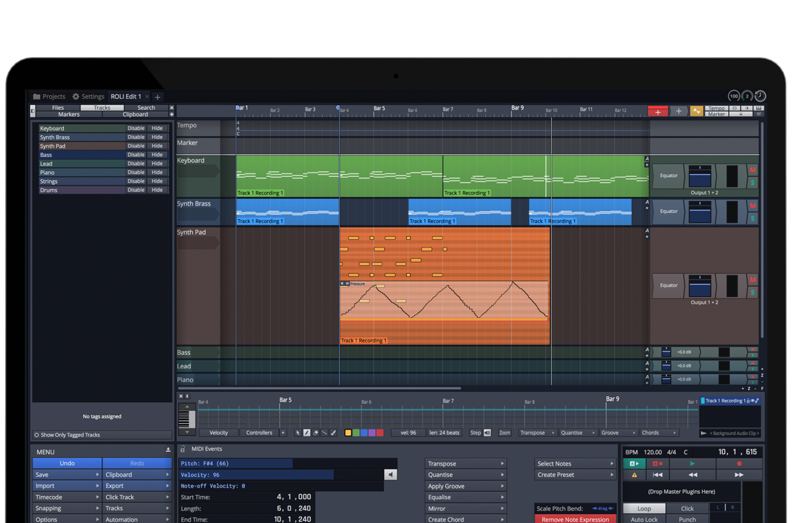 あなたのビートメイクに革命を。Studio Editionには世界初のMIDI Polyphonic Expression (MPE)に対応するドラム音源、ROLI Studio Drumsが付属。ドラムサウンドを加工したり、5Dタッチで素早くグルーブを作ることができます。