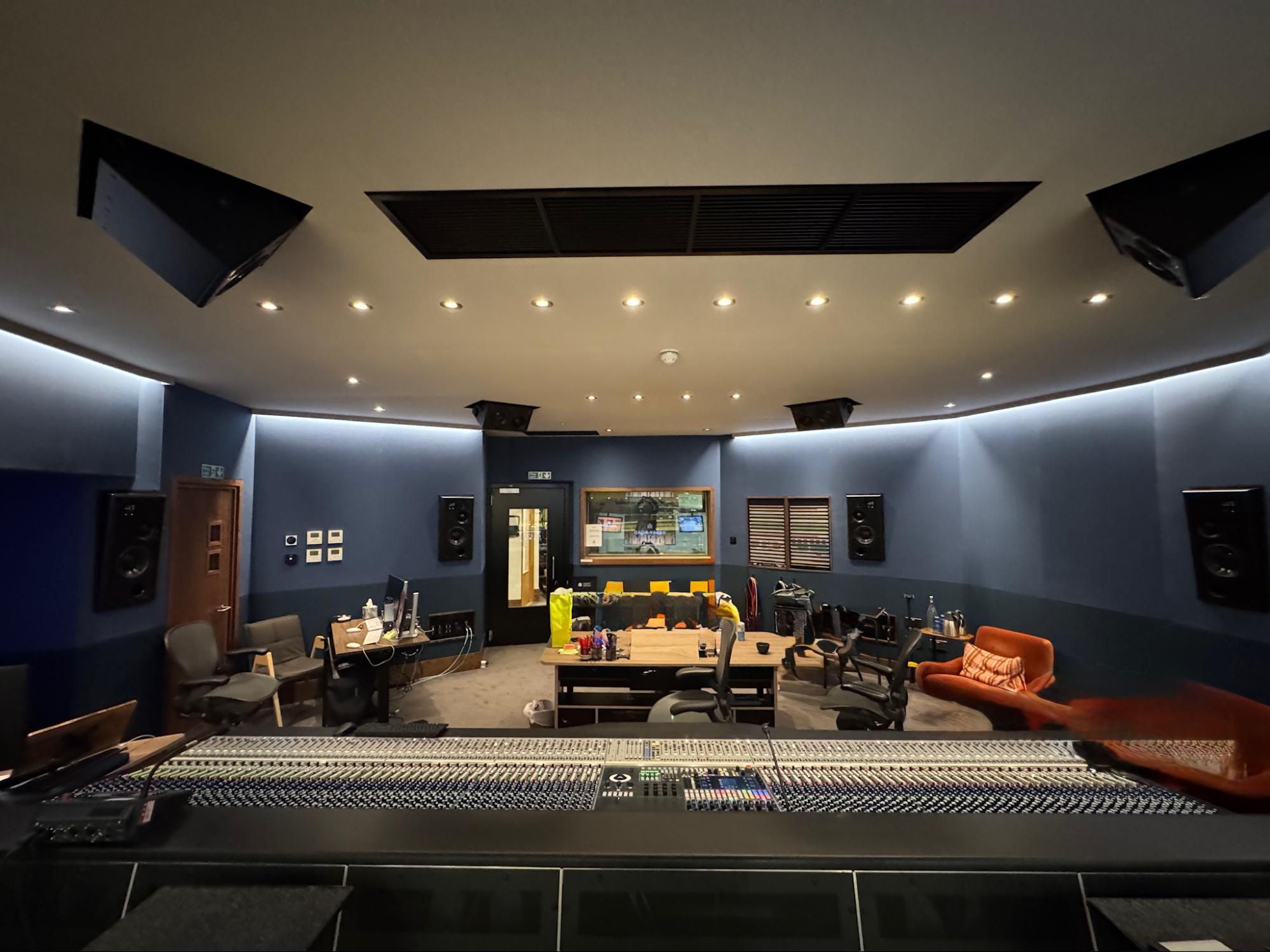 Studio 1では、この規模の商業スタジオにおける業界標準として 7.1.4サラウンド構成を採用している 。長年にわたる映画音楽制作の実績を反映したものだ。