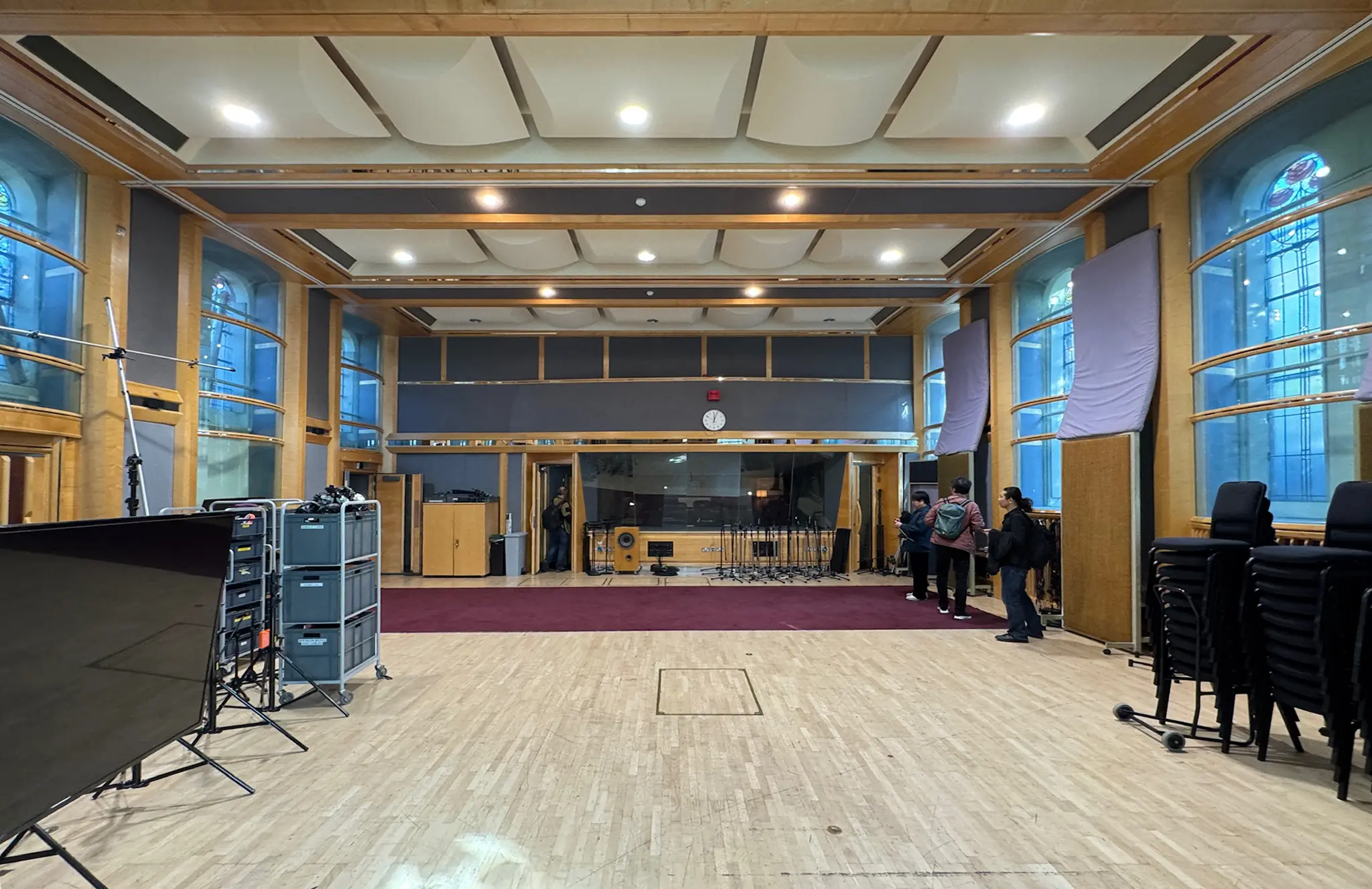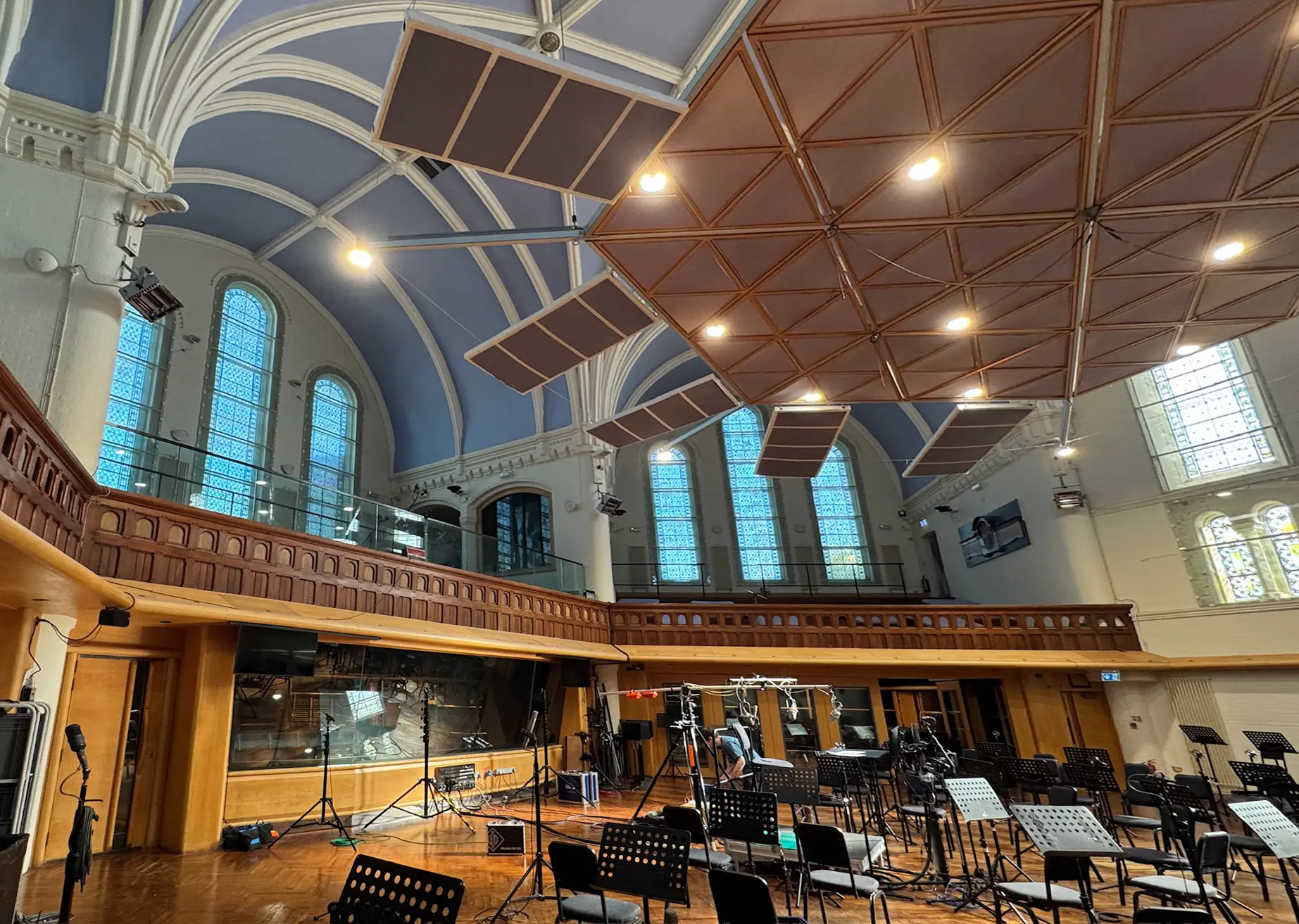 AIR Studiosを象徴する空間が、メインフロアに広がる The Hall(ザ・ホール)である。ここは、フルオーケストラと合唱団を同時に収録できる、世界でも数少ない録音空間のひとつだ。