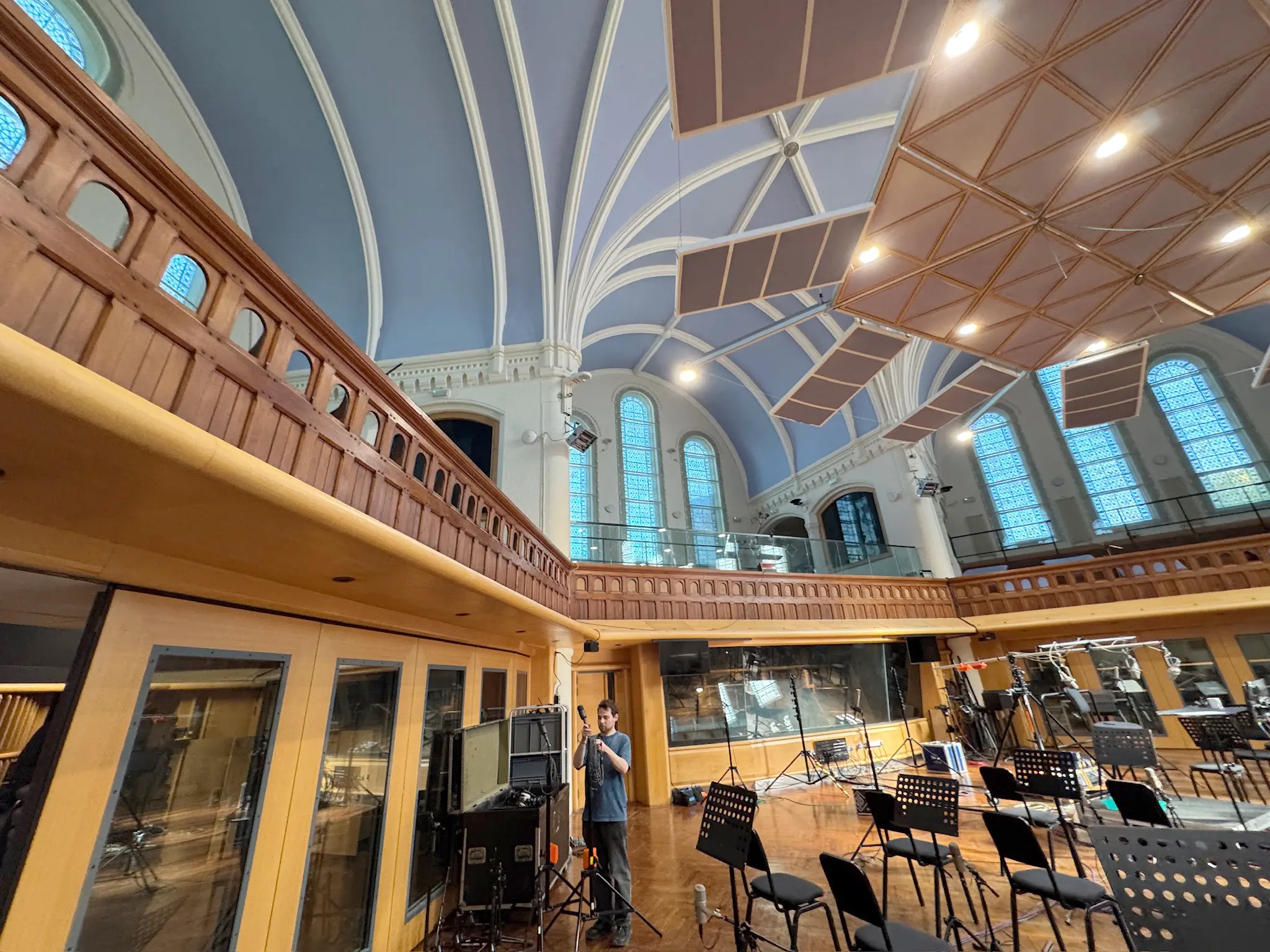 AIR Studiosは教会を改築した建物ということもあり、特に天井の高さが生み出す垂直方向の残響が印象的でした。日本人にはあまり馴染みのない教会特有の響きがそのまま広がり、建物の構造が音として現れているかのように感じられます。