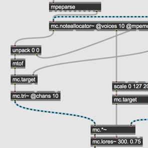 MPEでは複音のうち1音だけにピッチベンド情報を与えることが可能です