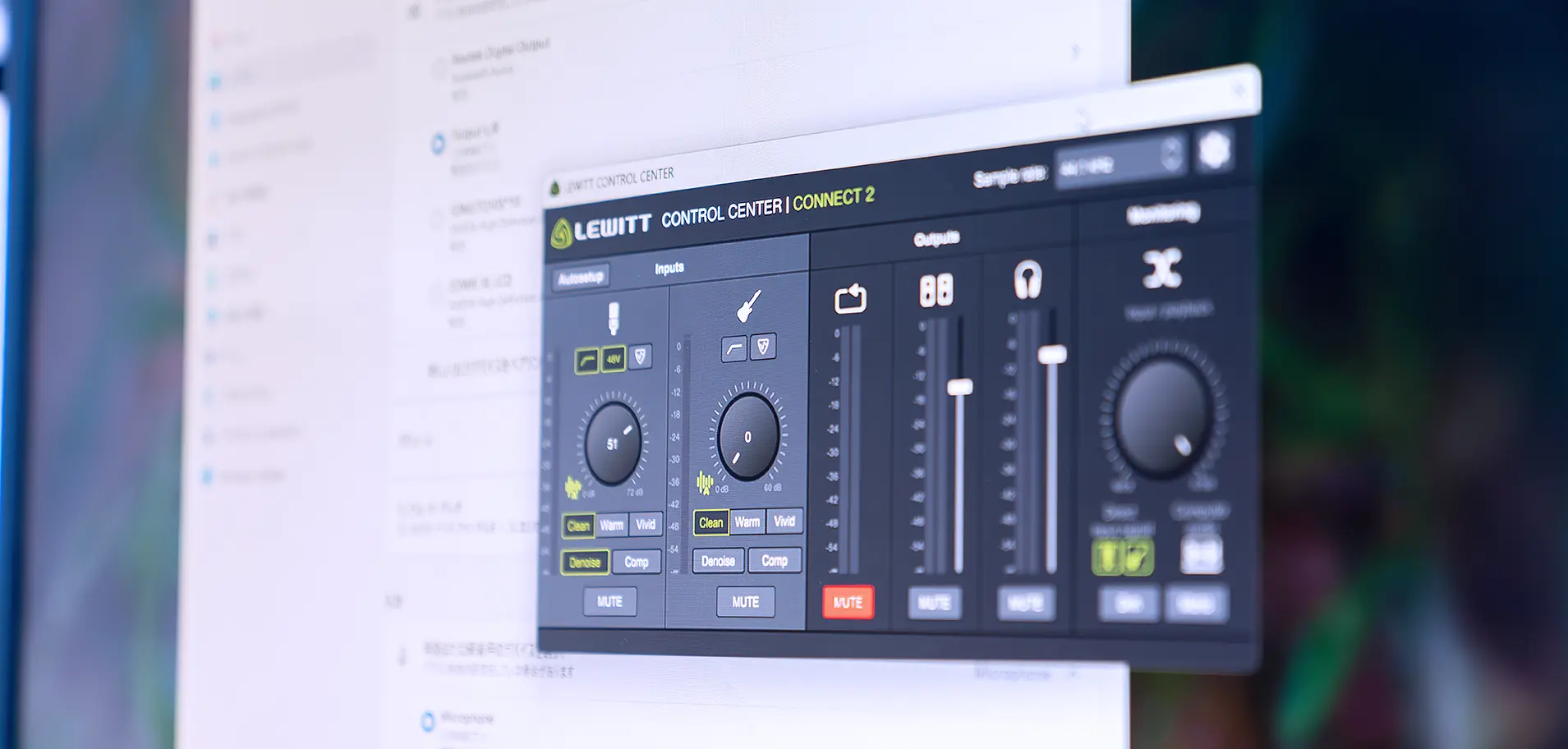 録音したいソースや求めるサウンドを選んでいくだけで、CONNECT 2は適切な入力設定(入力Gainや+48v、ローカット)、好みのプリアンプ・キャラクター、過大入力による歪みを防止するクリップガード、一貫したレベルを提供するコンプレッサー、バックグラウンドノイズを学習/除去するデノイザーなどを自動的にセットアップします。