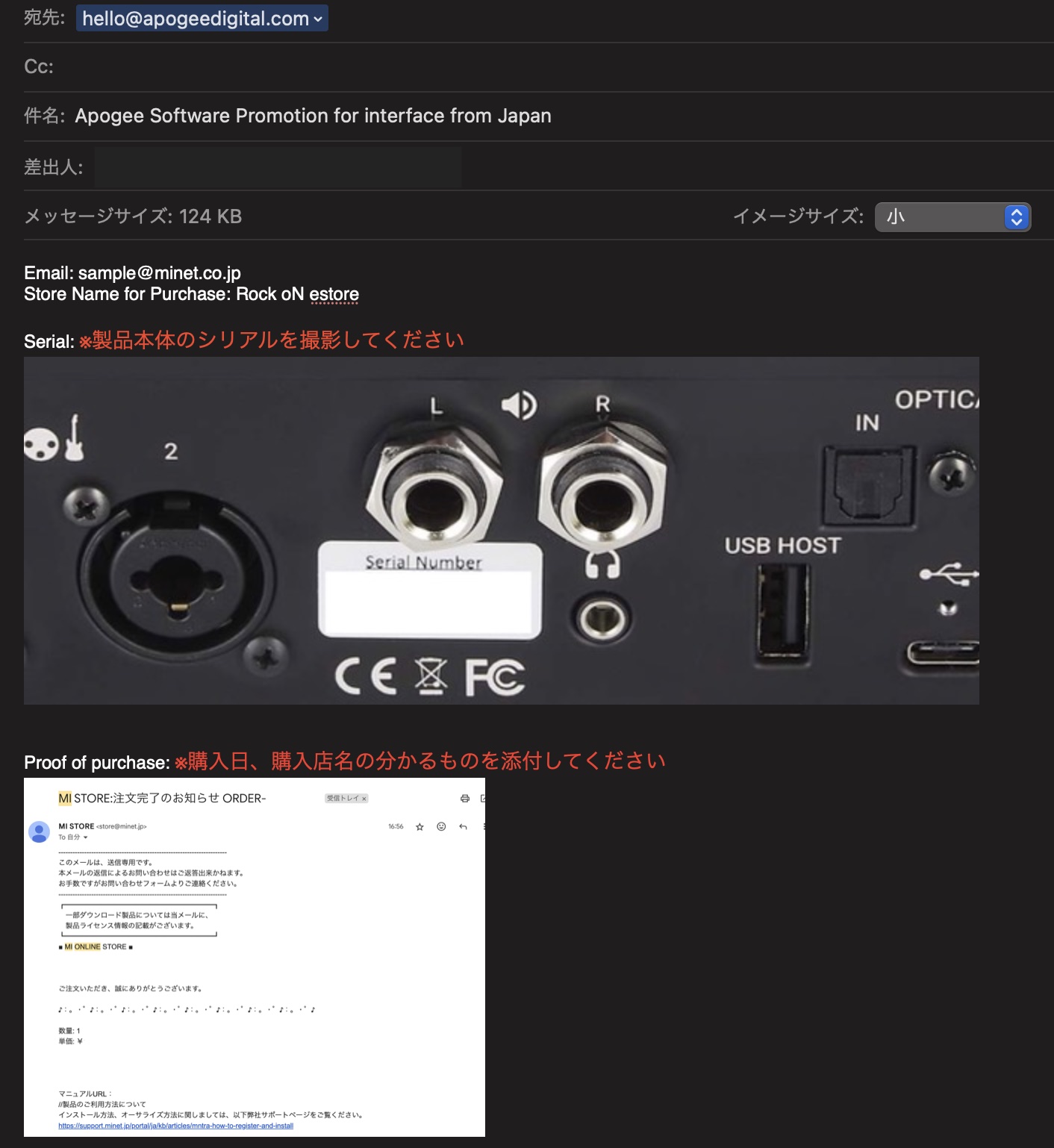 • Apogee社からのメールが届かない場合、迷惑メールに振り分けられている場合がございます。念のためご確認ください。