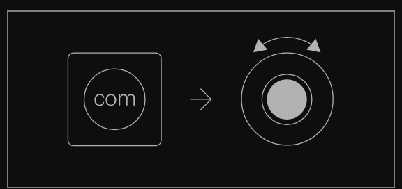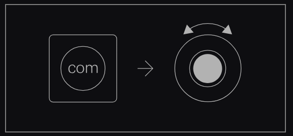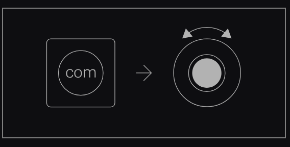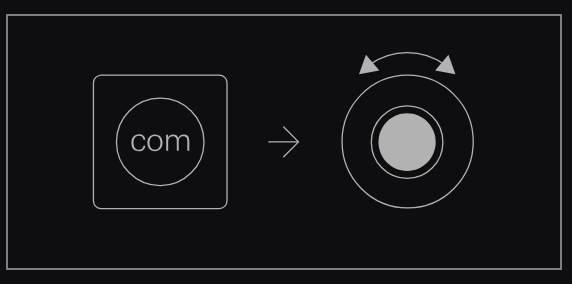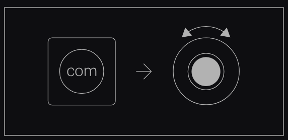 com 画面に入ったら、ダークグレーエンコーダーを押しこみます、OP–XY を Bluetooth MIDI 上でアドバタイズします。