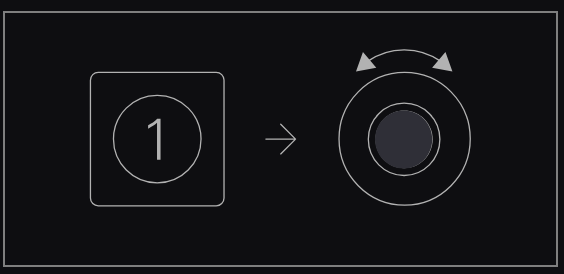 velocity 設定が選択されていることを確認し、ライトグレーエンコーダーを回してベロシティ設定を選択します。設定は 3 種類あります。