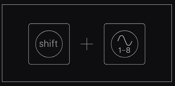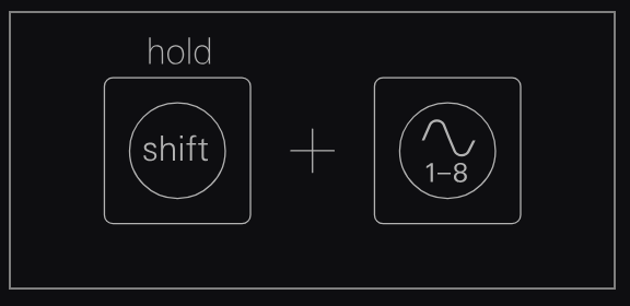 モジュレーションホイール、アフタータッチ、ピッチベンド、ベロシティを割り当て、シンセパラメータをモジュレートしたい場合は、shift と instrument を押して preset settings を開きます。