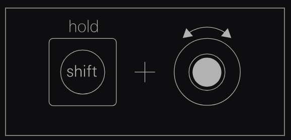 次に shift を押しながらライトグレーノブを反時計回りに回して、pitchbend のピッチモジュレーションを off に設定します。