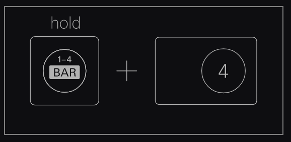 bar を押しながら、4 とラベル付けされた黒鍵(c# キー)を押してトラックスケールを 4 に設定します。これにより、パターン再生が 4 倍遅くなり、1 つのシーケンスで 4 バーをシーケンスできます。