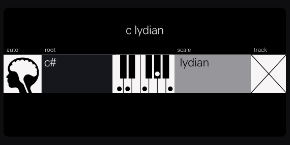 brain によって、前述の手順で録音したノートの key と scale が自動検出されます。scale を確認し、brain の画面でその範囲に収まるノートを演奏してみましょう。演奏に合わせて brain がノートとコードをインテリジェントにトランスポーズします。